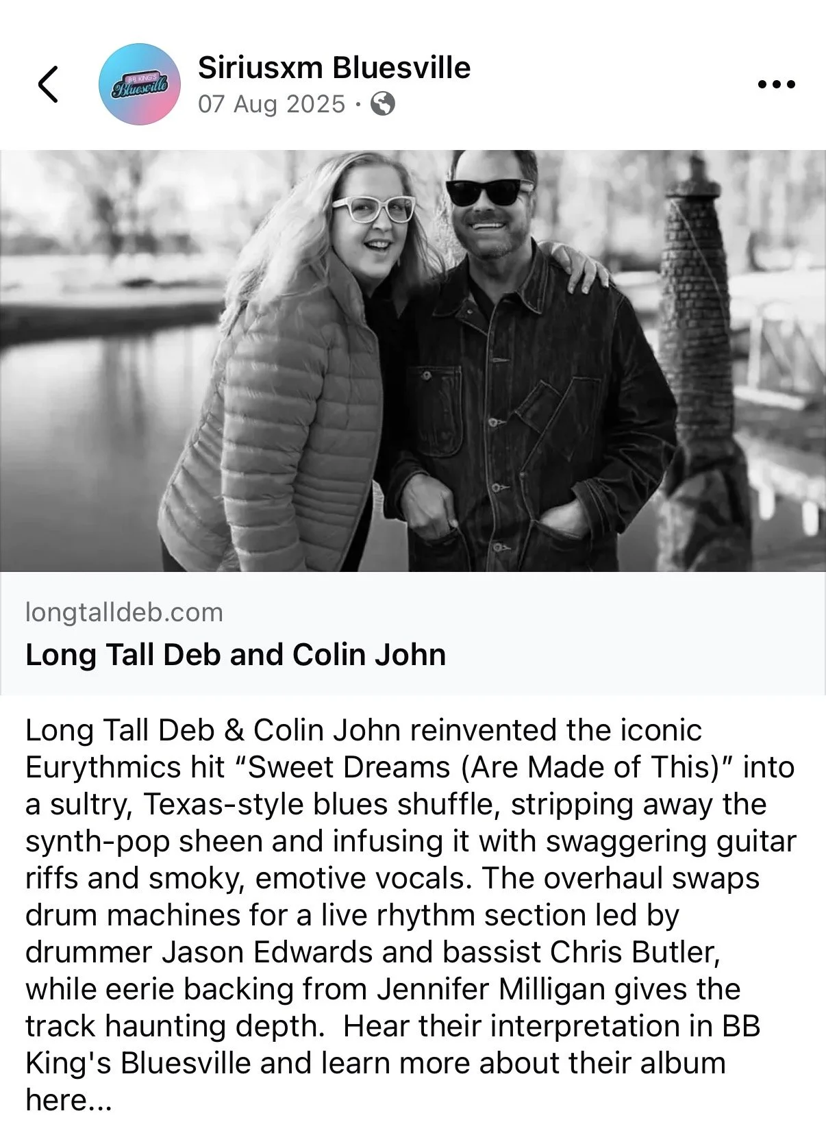 “Long Tall Deb raises attitude to a new latitude. Her songs cook with more smoke and sauce than all of Memphis, and her soul will break your back. Colin John’s guitar flogs you with a cotton branch ’til you bleed honey.